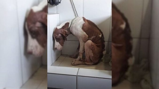 He immediately parked his motorbike and rushed to her aid. The pup looked heartbroken and dejected. She was all skin and bones.