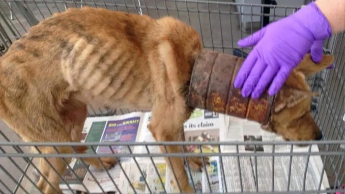 Near Dowdy Ferry Road and the Interstate, a heartbreaking discovery shocked a passerby: a young shepherd mix, later named Olivia, was wandering with a coffee can tightly wedged around her neck.