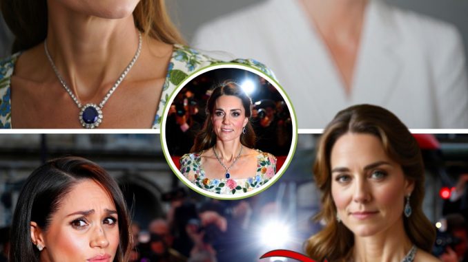 What made the appearance especially meaningful was the jewelry Catherine chose to wear. She paired the gown with a necklace that once belonged to Diana, Princess of Wales. According to reputable royal historians and coverage from outlets like People Magazine and Town & Country, many of Diana’s jewels were passed down to her sons, Prince William and Prince Harry, and are occasionally worn by their spouses on important occasions.
