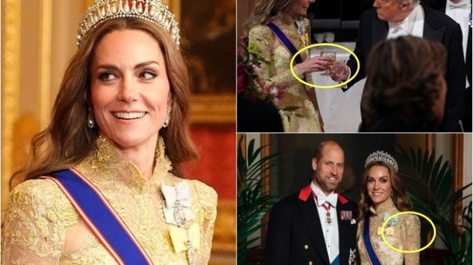 Princess Catherine’s appearance at the Windsor Castle state banquet showcased a combination of history, symbolism, and elegance. Her choice of the Lover’s Knot Tiara connected her to a century-old royal tradition and to the memory of Diana, Princess of Wales. Her gold gown reflected both the prestige of the event and her evolving role within the royal family.