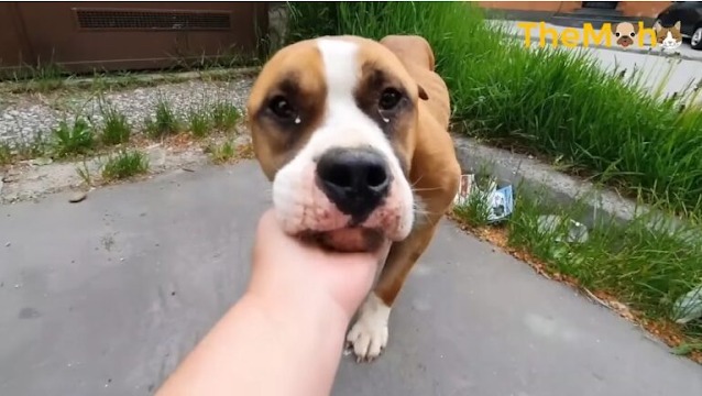 Alphonzo, identified as an American Staffordshire Terrier (Amstaff), was found unable to move, possibly injured earlier in the secluded area.