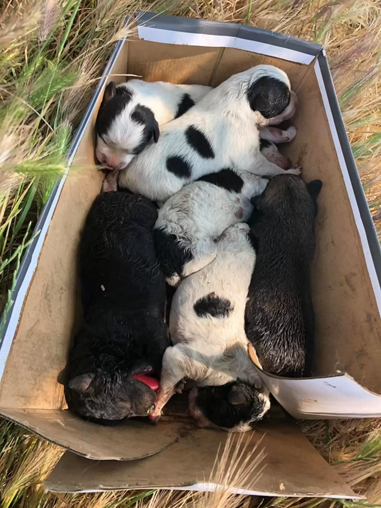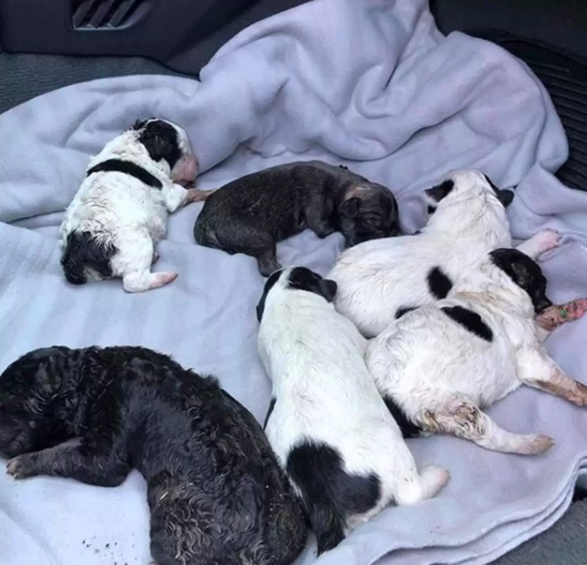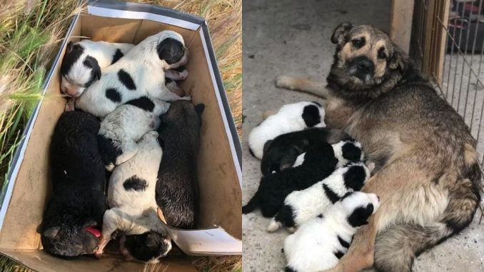 Inside that flimsy cardboard box, a heartbreaking sight awaited them — several fragile puppies curled together, their tiny bodies still damp from birth.