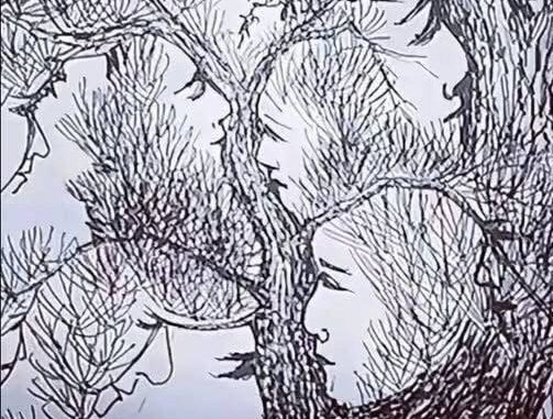 One of the most popular examples of pareidolia today is the tree illusion — an image where faces appear to be carved naturally into the bark, branches, or roots. At first glance, it’s just a tree. But when you focus, human profiles start to appear: a pair of eyes, a nose, lips, even the outline of hair.