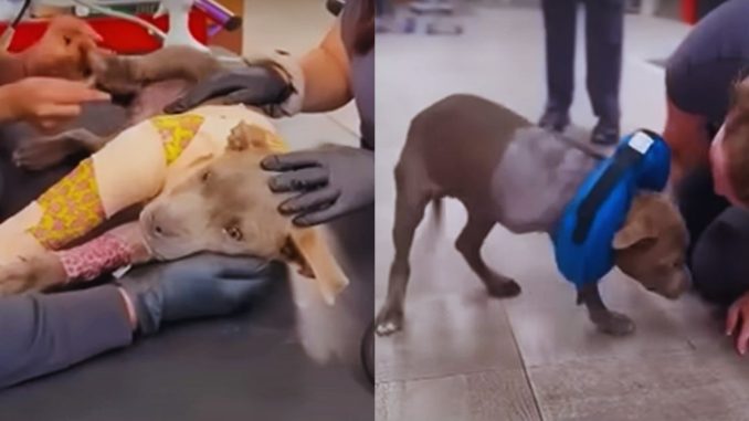 Veterinary staff examined her gently. They noted dehydration, exhaustion, and an injury that explained why she hadn’t moved when she was found. One of her legs was badly damaged, and the infection had progressed further than anyone hoped.