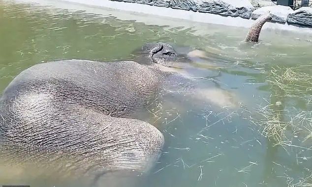On one such day, an Asian elephant named Colonel quietly demonstrated something profound. With no audience in mind and no effort to impress, he stepped into a pool, submerged his massive body, lifted only the tip of his trunk above the surface, and drifted into a peaceful nap.