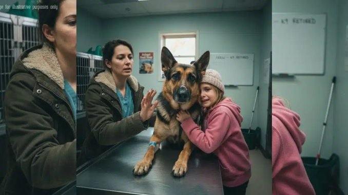 The shelter fluorescents hummed a cheap hymn. On the stainless table: a brown-and-black shepherd with one front leg gone and a pale scar raking his muzzle like an old river. He trembled but didn’t look away from my daughter. The vet tech’s hand hovered with the syringe. “Ma’am,” she said softly, “we’re at capacity, and nobody wants—”
