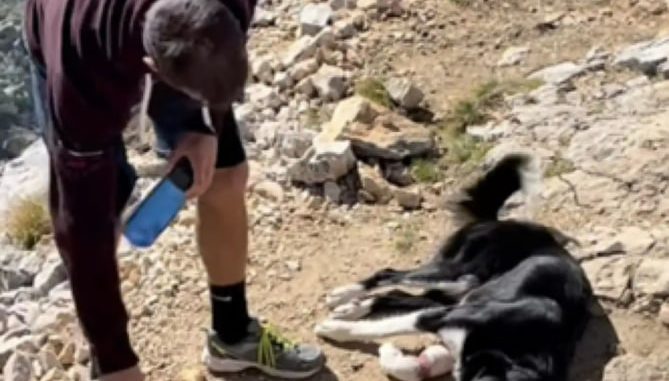 With limited options, they improvised. Using a blanket, they carefully lifted the dog and took turns carrying him down the mountain. Each step required focus, balance, and cooperation.