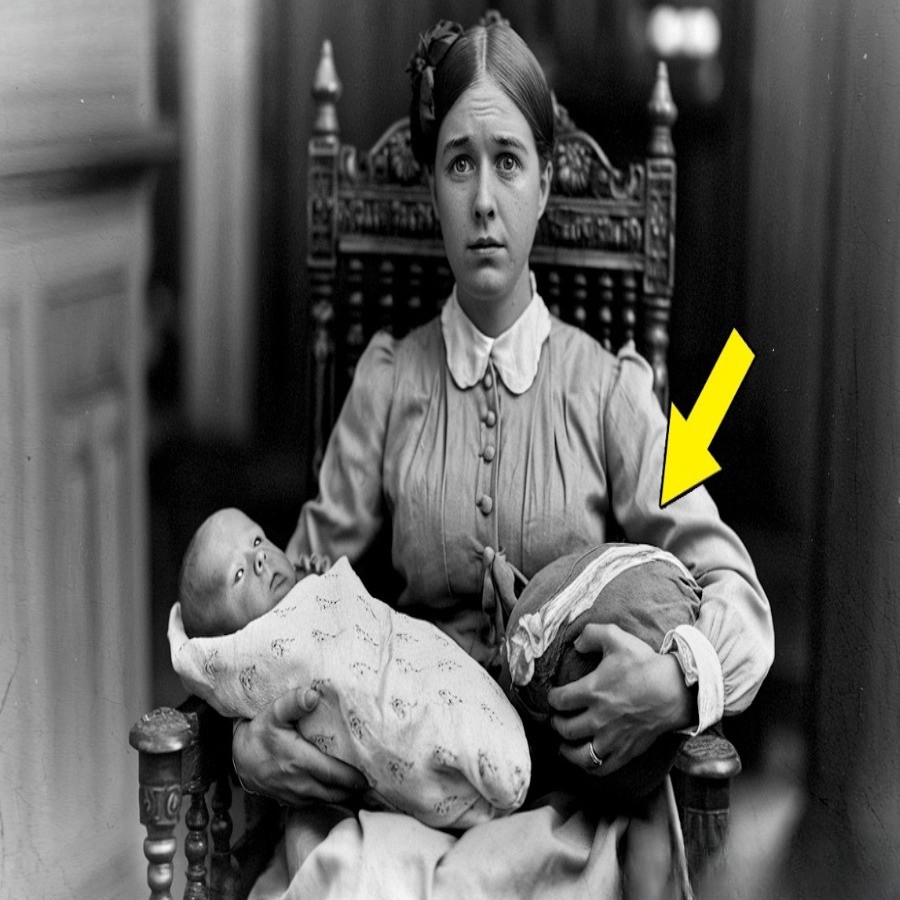 At first, the image blended in. A seated woman in a dark Victorian dress. A baby wrapped in light-colored christening fabric. The standard visual vocabulary of the era.