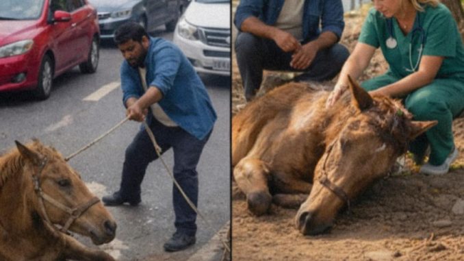 It began as many viral moments do: a short video, a few seconds long, captured on a phone and shared widely online. In the clip, a horse stands in the middle of a busy road, traffic backed up behind her. A man is seen pulling the animal forcefully away from the roadway. The horse resists, her body stiff, her legs trembling. To many viewers, the scene looked upsetting. Comments poured in, accusing the man of cruelty, impatience, or ignorance.