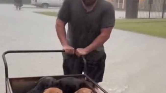 Evan’s steady presence mattered. His calm voice mattered. Even as the water rose higher, his ability to pause, make eye contact, and slow his movements helped the dogs remain focused rather than panicked.