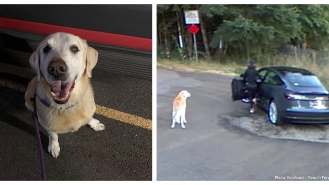 The footage shows the woman removing Henry’s collar and identification before walking him briefly toward a trail area. She then returned to her vehicle and drove away, leaving Henry behind in the park.