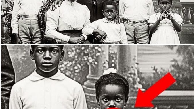 Six figures stared back at her: a father standing, hand resting protectively on his wife’s shoulder; a mother seated, posture rigid, lace collar immaculate; four children arranged with careful symmetry.