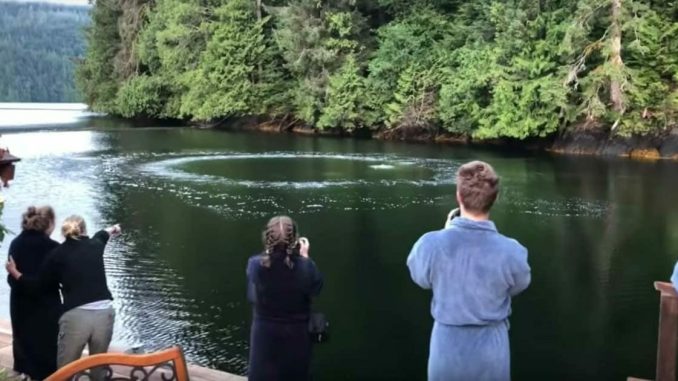As diners sat quietly enjoying their morning meal, the calm water just outside the lodge suddenly began to bubble — violently.