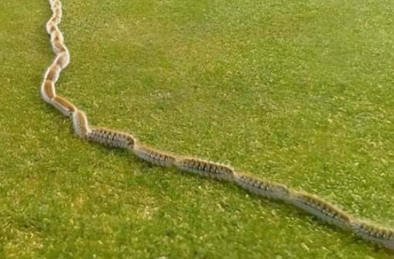 Only when looking closer did the truth emerge. What appeared to be a rope was actually a moving line of caterpillars, arranged so closely together that they formed a single, continuous shape. There were dozens, perhaps more than a hundred, all crawling in the same direction with surprising precision.