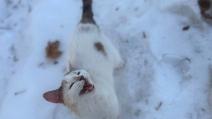 One late December day, however, one cat stood out. She approached Amir with an urgency he had never seen before, following him down the street and calling out repeatedly. The temperatures were low, snow covered the ground, and the cat appeared cold and damp from the winter weather.
