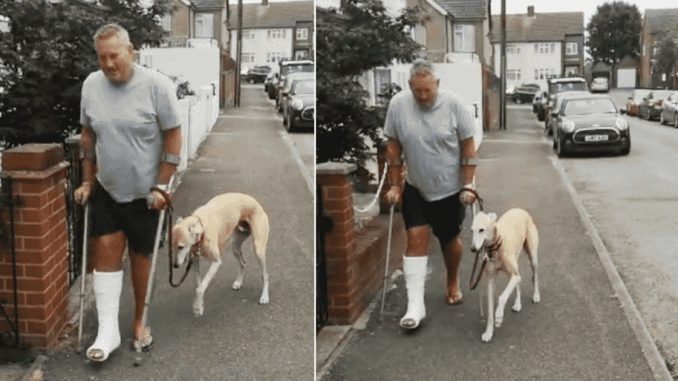 After breaking his ankle in an accident, Russell Jones began using crutches and wearing a plaster cast that would stay on for seven weeks. Not long after, he noticed something strange: his 8-year-old lurcher, Billy, had started limping too.