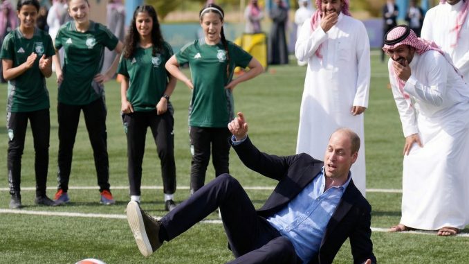 Prince William’s visit to Saudi Arabia included a documented engagement with young female footballers at MISK Sports City, where he learned about the development of women’s sport in the Kingdom. Verified reporting confirms his participation in youth football activities and meetings with Saudi sports leaders.