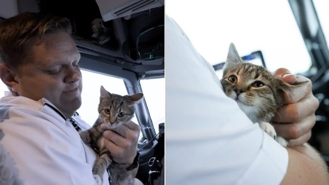 There is something universally appealing about unexpected connection. At cruising altitude, surrounded by clouds and uncertainty about the storm below, a simple interaction between a pilot and a kitten reminded everyone on board of life’s unpredictability.