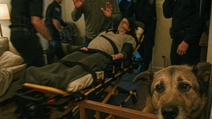 The word “permanently” landed like a stone in Ethan’s chest. The paramedics were already lifting Rachel, strapping her onto the stretcher, voices low and urgent as they checked monitors and asked questions he barely heard. Buddy let out a broken, high-pitched sound from behind the gate, straining toward her as she was carried past, his injured leg trembling with the effort.