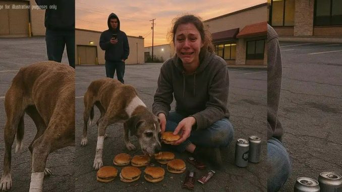 By the time the boy hit record, the woman had already lined up ten greasy burgers, chocolate bars, and cheap beer in front of her limping dog in the dim back lot behind the strip mall. What the internet would soon call “the cruel burger lady” was really just a tired care worker on her day off, trying to give her dying dog one last taste of everything life had ever refused him.