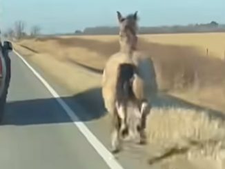 On a quiet rural highway, under a bright afternoon sky, a worn-out horse stood in the back of a moving livestock truck. The road stretched […]
