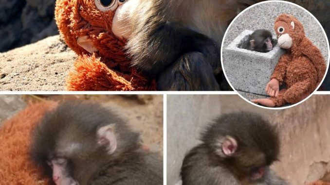 Photos and videos soon began circulating online showing the tiny monkey hugging the stuffed toy, clinging to it for comfort the same way baby macaques would normally cling to their mothers.