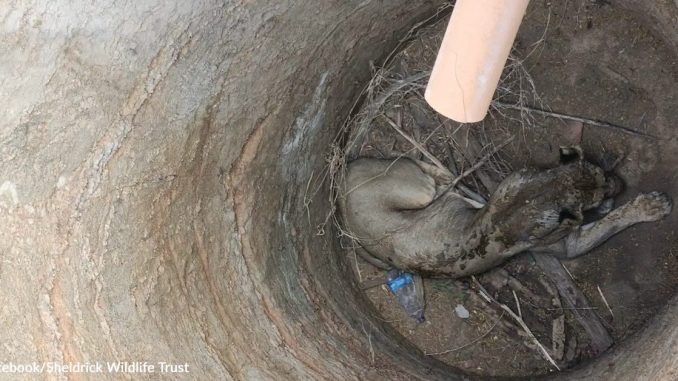 On the quiet edge of a rural village in Kenya, what began as an ordinary day quickly turned into a remarkable wildlife rescue story. A group of passersby noticed something unusual when they glanced into an open septic pit. At first, they saw only a dark shape at the bottom of the deep shaft.