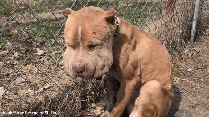In the spring of 2019, volunteers from Stray Rescue of St. Louis received an urgent report about a dog tied to a fence. Witnesses said the animal looked badly injured and had been sitting alone in the heat.