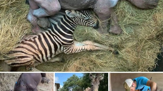 At first glance, the pairing seemed surprising. One had the distinctive stripes of a young Plains Zebra, while the other had the sturdy body shape of a baby Rhinoceros.