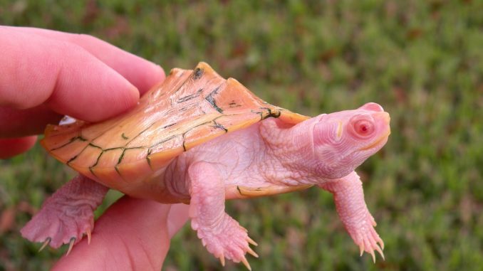 The pale or white Mississippi Map Turtle is a striking example of how genetic variation can produce unexpected beauty in the natural world.