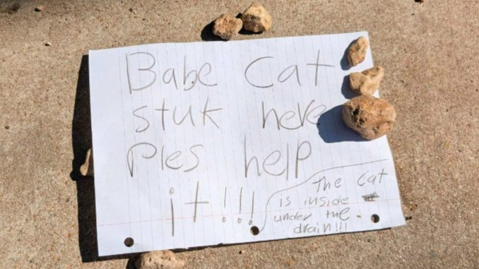 They wrote a small note warning passersby that a kitten was trapped nearby.