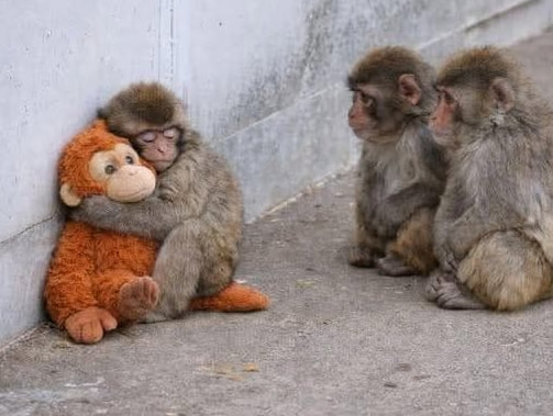The image of a baby monkey hugging a toy quickly captured attention across social media. For many viewers, the moment felt deeply emotional.