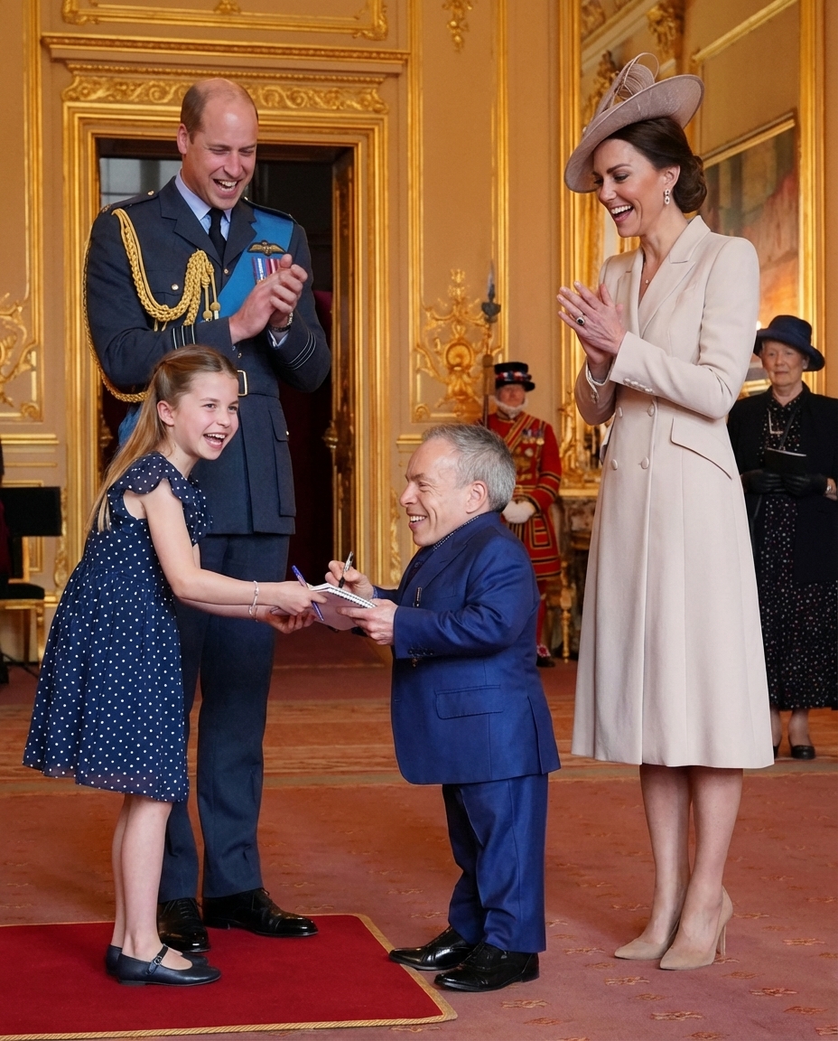 With the help of her parents, she managed to sneak into Windsor Castle, where the ceremony was taking place. The Royal Family often emphasizes the importance of humility and kindness, and Charlotte’s gesture was a testament to those values. Her desire to meet Warwick Davis and get his autograph wasn’t just a moment of admiration; it was a testament to the power of admiration and respect for those who inspire us.
