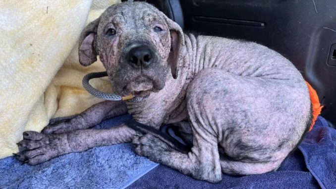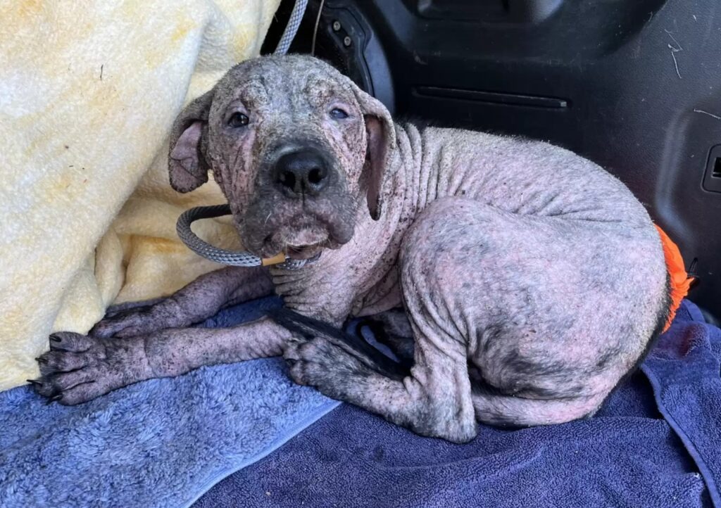 The following day, staff were able to confirm that the animal was a young puppy in need of assistance. The dog appeared to be in poor health, showing visible signs of skin issues and difficulty walking. These indicators suggested that the puppy had likely been without consistent care for some time.