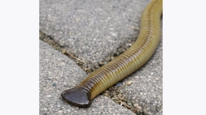 After days of steady rain, a homeowner steps outside and notices something unfamiliar stretching across a damp sidewalk. At first glance, it looks like an oversized earthworm. But on closer inspection, its body appears flatter, smoother, and its head spreads outward in a shape unlike any worm commonly seen in gardens. Encounters like this have become increasingly common in recent years, sparking curiosity and concern across many regions.