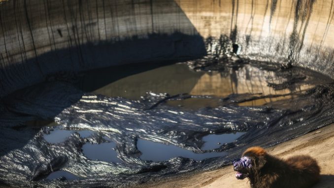Somewhere on the edge of a construction site, in a place meant for progress and development, a silent struggle was unfolding. A dog had become trapped in a thick, dark substance, unable to move freely, unable to see clearly, and barely able to breathe.