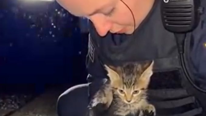 Tara wrapped the kitten in a towel and brought it into the warmth of her patrol car.