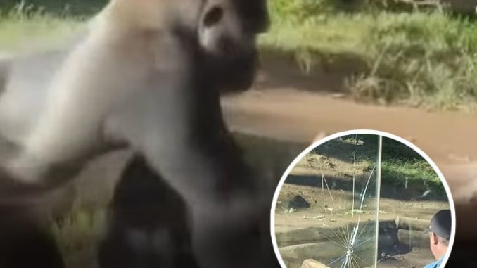 A male gorilla named Denny the Gorilla charged toward the viewing barrier. Within seconds, the impact echoed through the enclosure, startling visitors and prompting immediate reactions.
