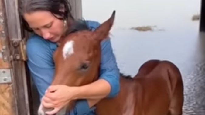 In the filly’s case, the rising water and noise from the storm likely triggered a heightened stress response, making it difficult for her to regain balance.