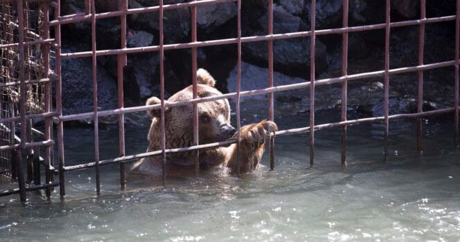 For nearly a decade, the bears lived inside a small metal cage near a restaurant in Armenia. The enclosure offered very little room to move, and their daily routine rarely changed. Visitors sometimes stopped to look at the animals, turning them into an unusual roadside attraction.