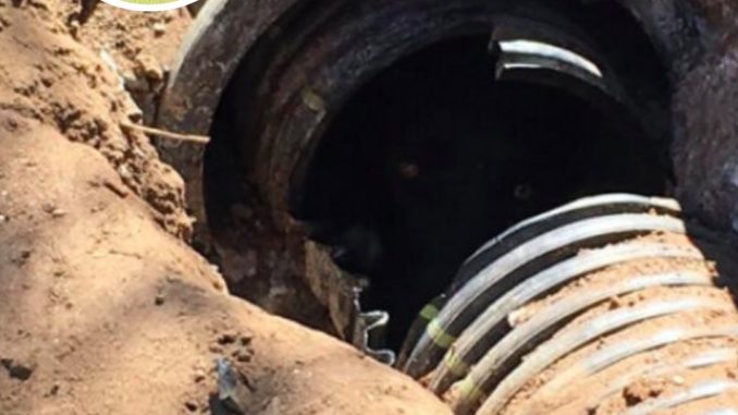 As the soil gave way, a buried drainage pipe came into view. After carefully opening it, he saw a pair of eyes reflecting back from the darkness.