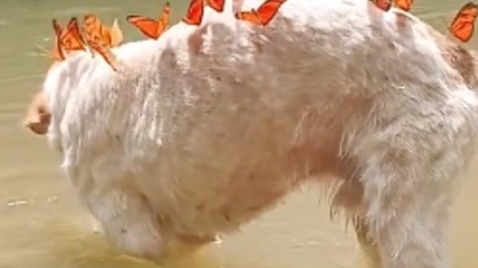 When viewers watch Polar surrounded by monarchs, it is easy to interpret the scene through this symbolic lens. The image feels peaceful, almost poetic, as if the dog has become part of a quiet ritual in the जंगल.