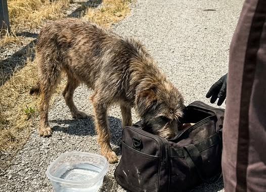 When authorities arrived and carefully approached the scene, they discovered that the dog was not guarding an object, but living beings. Inside the torn bag were three very young puppies, fragile and in need of care.