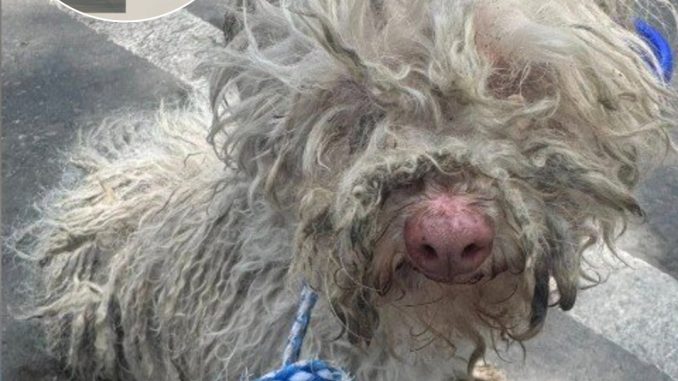 The dog, later identified as Bella, was frightened and hesitant. Her fur was severely matted, and her behavior suggested she had been navigating the streets alone for some time. Approaching her required patience, calmness, and persistence.