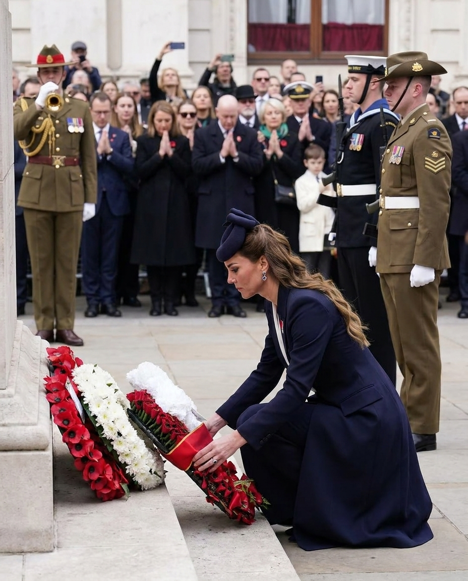 As the morning mist began to lift over the Thames on April 25, 2026, a profound silence settled across Whitehall. The distant chime of Big Ben marked the hour, but for those gathered near the Cenotaph, the passage of time felt suspended. Among the dignitaries and veterans stood the Princess of Wales, Catherine, her presence a bridge between the weight of royal tradition and a modern era of remembrance. Wearing a navy blue Alexander McQueen coat-dress—a sartorial nod to the naval heritage of the day—she stepped forward to lay a wreath on behalf of King Charles III. It was a gesture that transcended mere protocol, touching on a century-old story of courage that began on the distant, rugged shores of Gallipoli.