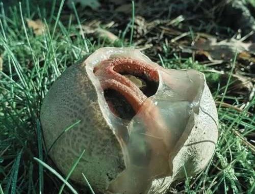 Unlike many fungi that rely on wind to spread spores, stinkhorns use insects. The top of the mushroom produces a sticky, spore-containing substance that emits a strong smell designed to attract flies and other insects.