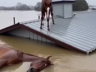 Under a heavy gray sky, as floodwaters swallowed everything in sight, a young brown horse stood alone on the slanted roof of a submerged barn. […]
